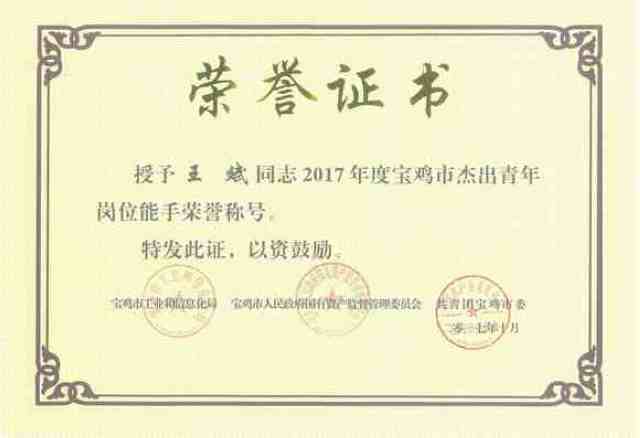 日前,零件事業(yè)部彈性元件產(chǎn)線成型組班組長王斌,喜獲寶雞市“杰出青年崗位能手”榮譽(yù)稱號(hào)。此次評(píng)選活動(dòng)是由共青團(tuán)寶雞市委、市工業(yè)和信息化局、市人民政府國有資產(chǎn)監(jiān)督管理委員會(huì)聯(lián)合組織,旨在引導(dǎo)和鼓勵(lì)廣大青年不斷提高職業(yè)技能,增強(qiáng)創(chuàng)業(yè)創(chuàng)新熱情,造就一大批品德優(yōu)良,技能精湛、勇于創(chuàng)新、成績突出的優(yōu)秀青年人才。據(jù)悉,2017年寶雞市共有10人獲得“杰出青年崗位能手”榮譽(yù)稱號(hào)。